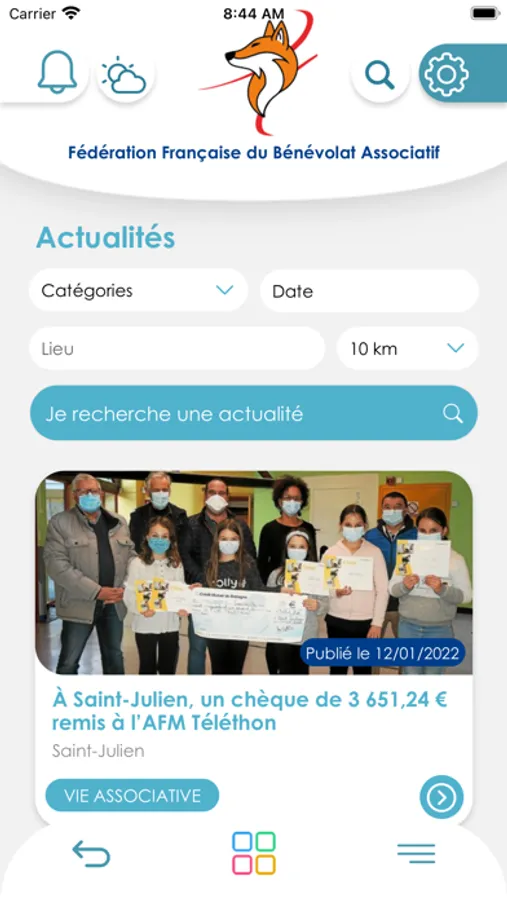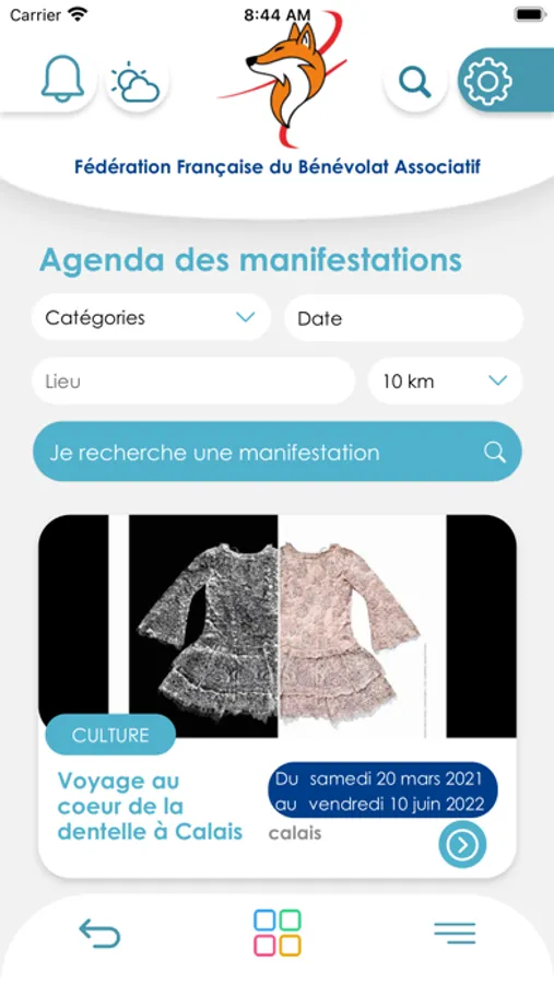 L’information du monde associatif, l’agenda des activités, avec une recherche soit géographique (rayon de 10, 50 ou 100 km) soit thématique. (9 familles)