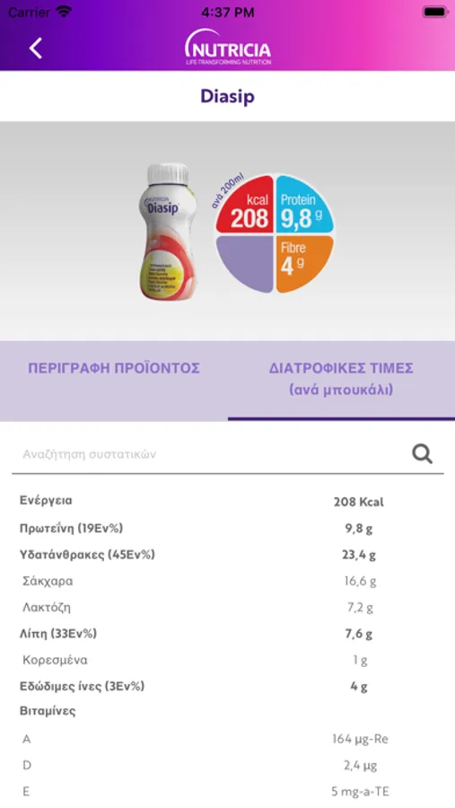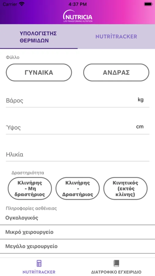 Καμία πληροφορία που θα εισαχθεί από τον Επαγγελματία Υγείας δεν θα αποθηκευτεί στην εφαρμογή ενώ η Nutricia δεν έχει πρόσβαση στις πληροφορίες αυτές με οποιονδήποτε τρόπο. Η Nutricia καταβάλλει κάθε δυνατή προσπάθεια για να διατηρεί αυτήν την εφαρμογή ενημερωμένη παρόλα αυτά ορισμένες πληροφορίες ενδέχεται να έχουν μεταβληθεί. Επικοινωνείτε πάντα με την εταιρεία για ενημερωμένες πληροφορίες αναφορικά με τα προϊόντα Nutricia.