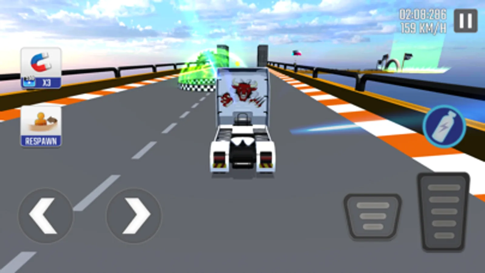 Mega Truck Driving Simulator and driving game is a really great time pass due to the great interest and entertaining gameplay. If you are unassertive, race in endless one-way mode but for more score, endless two-way is advantageous.