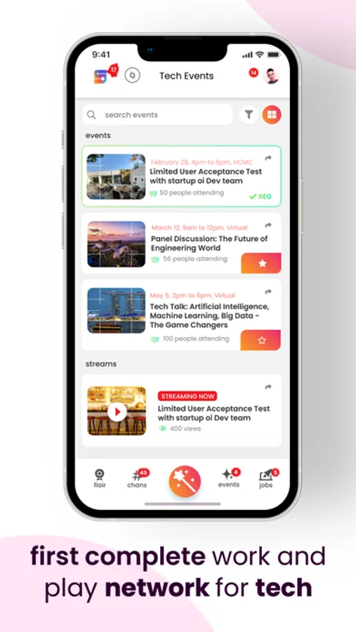 - Networking: Join the coolest tech community, connect with engineers around the world who are like-minded by searching for friends with similar interests or hobbies and joining any channel discussing trendy topics