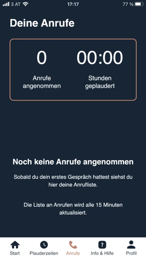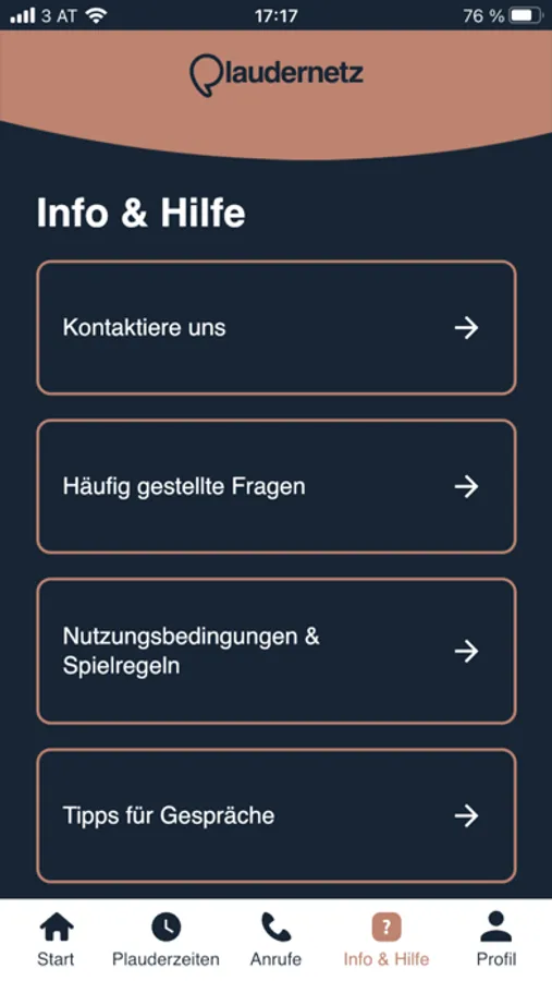 Die App wurde für registrierte Plauderpartner*innen entwickelt. Falls du noch nicht registriert bist, kannst du dich ganz einfach unter https://plaudernetz.at/plauderpartnerin-werden anmelden.