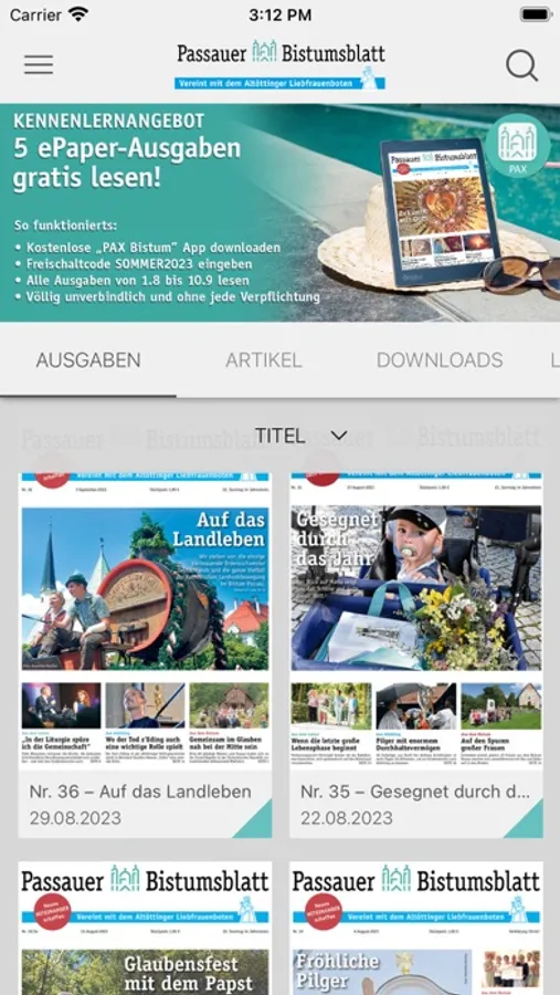 Ob zu Hause gemütlich auf dem Sofa, morgens auf dem Weg zur Arbeit oder im Urlaub am Strand – mit dem ePaper ist die Kirche von Passau überall dabei. In spannenden Berichten, Interviews und Reportagen bleiben Sie immer auf dem Laufenden, was im Bistum passiert. Fotostrecken und Videos geben einen lebendigen Eindruck vom Glaubensleben in Passau.