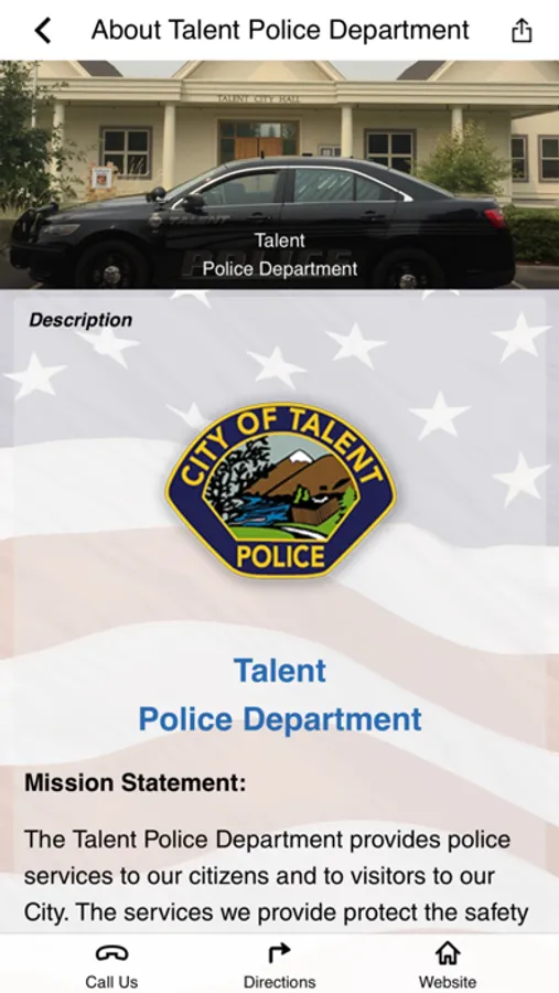 On behalf of the men and women of the Talent Police Department, welcome to our app. This app is for the employees and family members of the Talent Police Department, as well as the community it serves. It contains information about our department as well as safety and crime prevention tips. Talent Police Department employees will have access to a full range of wellness tools.