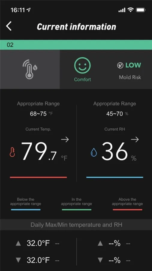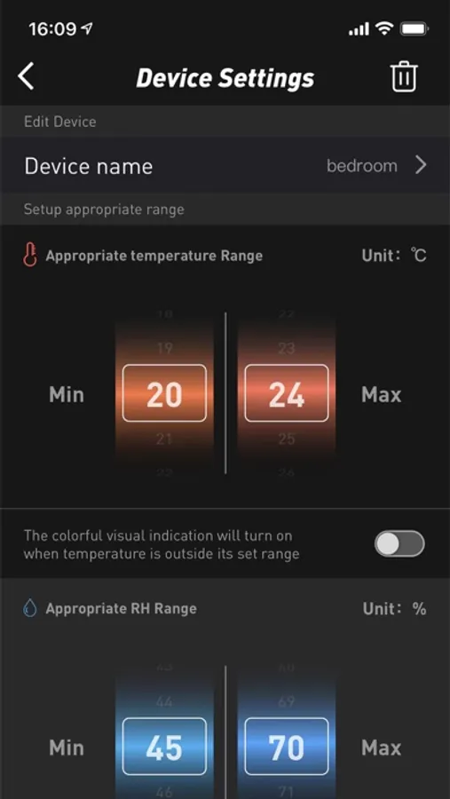 - Set temperature and humidity alarms to remind you automatically (Bluetooth connected state)