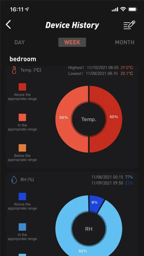 - Can export temperature and humidity data