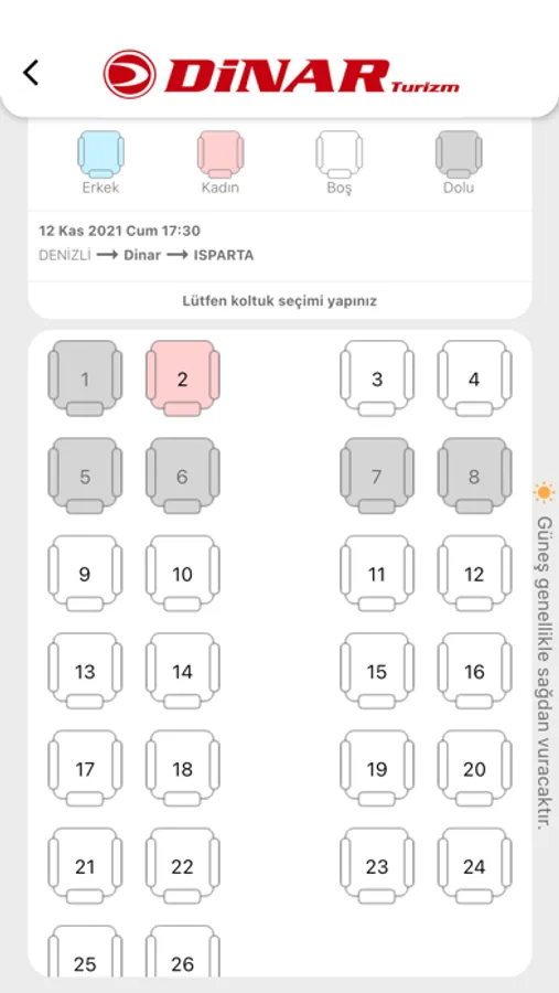 Dinar Turizm'in şehirlerarası ulaşım biletlerinin satılmasını sağlayan bir iPhone uygulamasıdır.