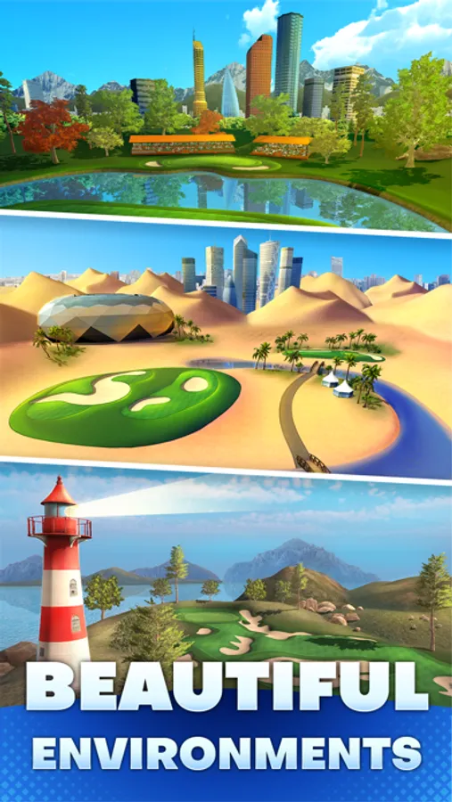 Start as a beginner player, train your swing and shots to progress, win the mini golf battle and other blitz challenges. Get ready for the world tour, tee off, drive and hit the ball, overcome obstacles on the fairway and greens and outplay every golf rival.