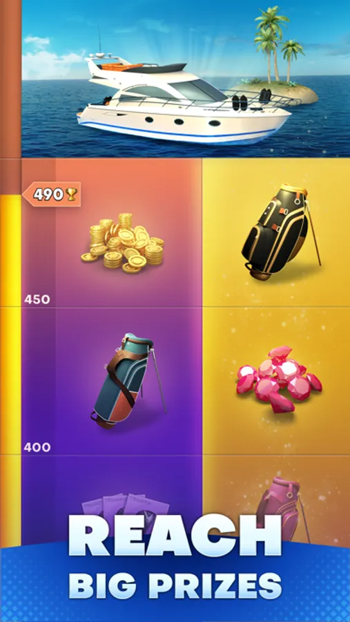 Unlock new worlds and amazing courses, win coins and gems, collect legendary clubs, customize your golfer and progress. Play every day to move up in the leaderboards and enjoy the sport like never before.