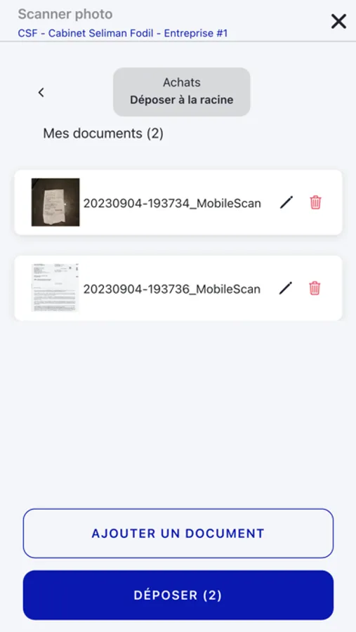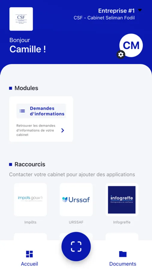 L'application CSF - Cabinet Seliman Fodil permet aux utilisateurs de scanner leurs documents depuis leur smartphone et de les envoyer directement sur la plateforme.