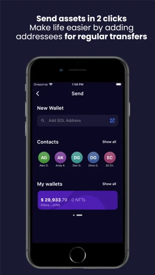 Access the Solana blockchain to view your Сollectibles purchased from DeFi marketplaces. Connect your wallet to DeFi web-sites which are enabled for third-party wallet connections, such as WalletConnect. Approve DeFi and GameFi blockchain transactions.