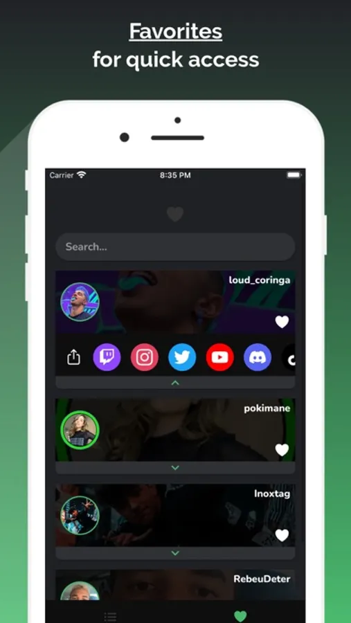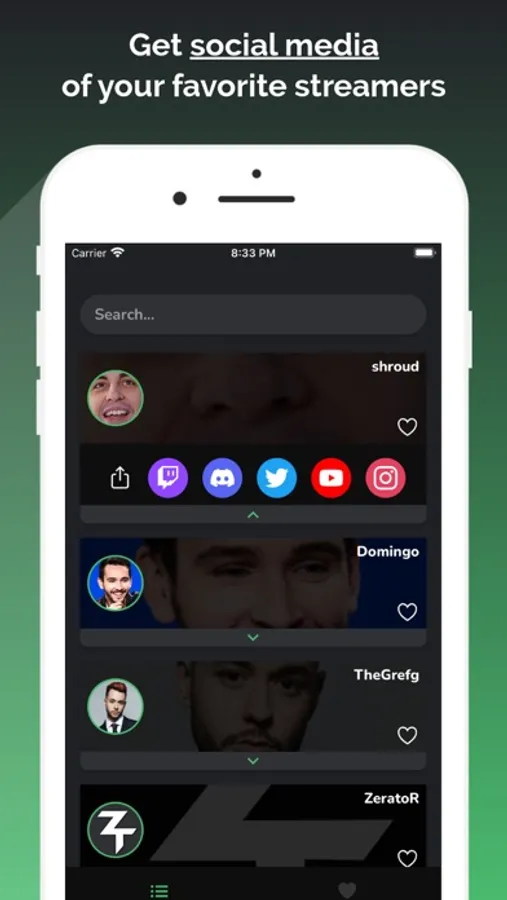 Add your favorite Twitch streamers to view their social networks quickly!
