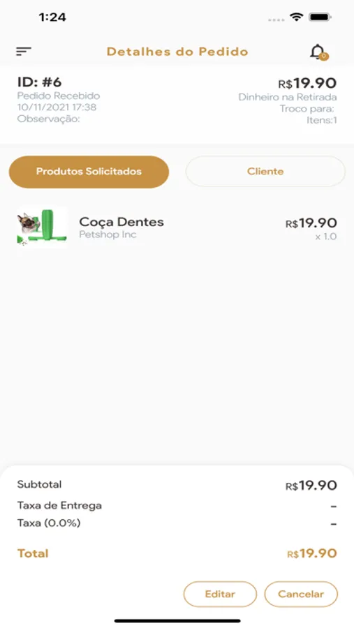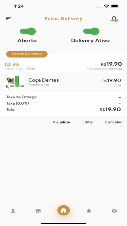 Aplicativo voltado para Comerciantes receberem seus pedidos do Patas Delivery diretamente no aplicativo.
