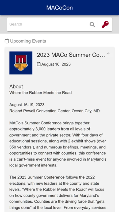 MACo's conferences are "must attend" events for anyone interested in Maryland's county governments. Use the app to view the full agenda, set a personal schedule, browse exhibitors and sponsors, and view exhibit hall and venue maps.