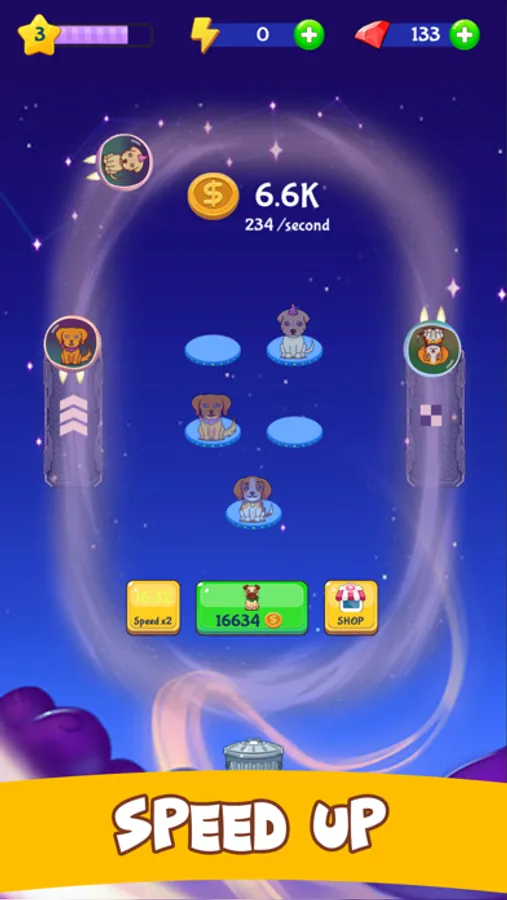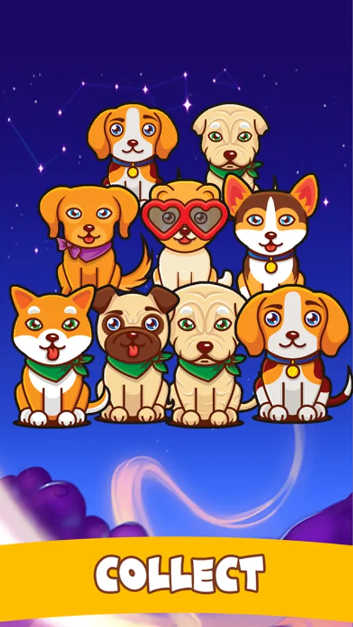 Match and merge your dogs in this fun, cute and adorable idle game.