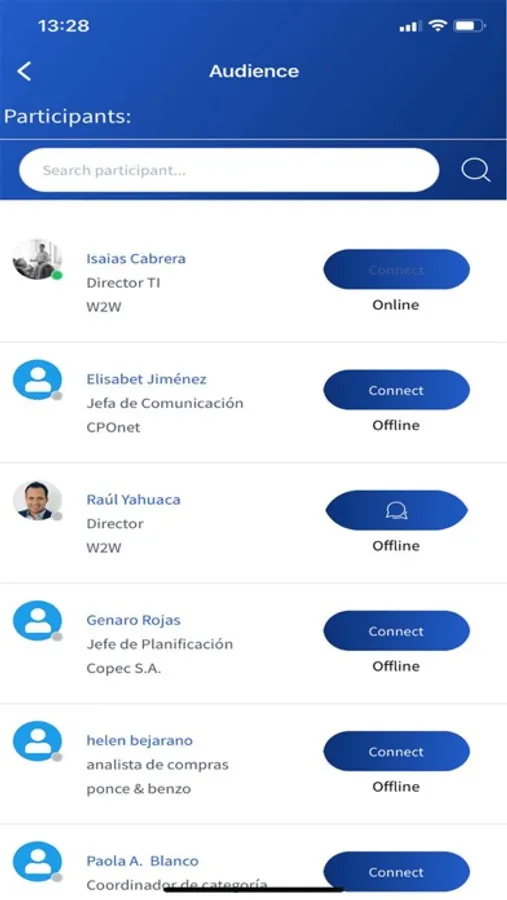 Somos una aplicación tanto web, como mobil con la cual podrás disfurtar de eventos virtuales o hibridos durante los cuales podras conectar, por medio de mensajes de texto o video llamadas, con los asistentes al evento asi como con ponentes y con el personal de los stands virtuales.