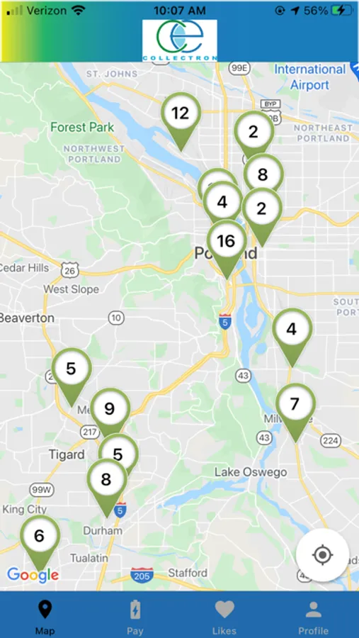 The Collectron Energy smartphone application lets users locate electric vehicle charging stations through a searchable map with GPS capability and pay for charging on those stations with an Collectron Energy account. The map enables users to view the status and availability of Collectron Energy managed chargers near their current location. Once a charging station is selected, driving directions are offered. Also, stations can be saved to the user’s favorites, allowing quick and easy access to the stations they use the most.
