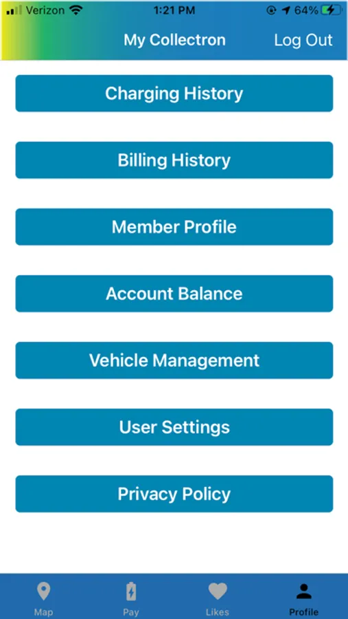 Additional features include viewing charging session and billing history, managing payment cards, and editing their profile for Collectron Energy members.