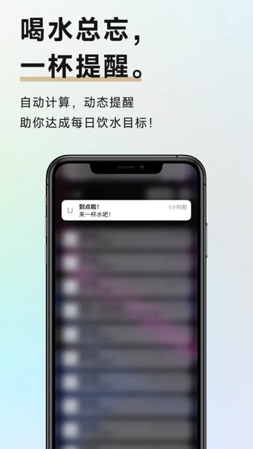 一杯以简单明了的文字与动画显示当前的饮水量,并根据饮水量变化动态提醒您喝水。