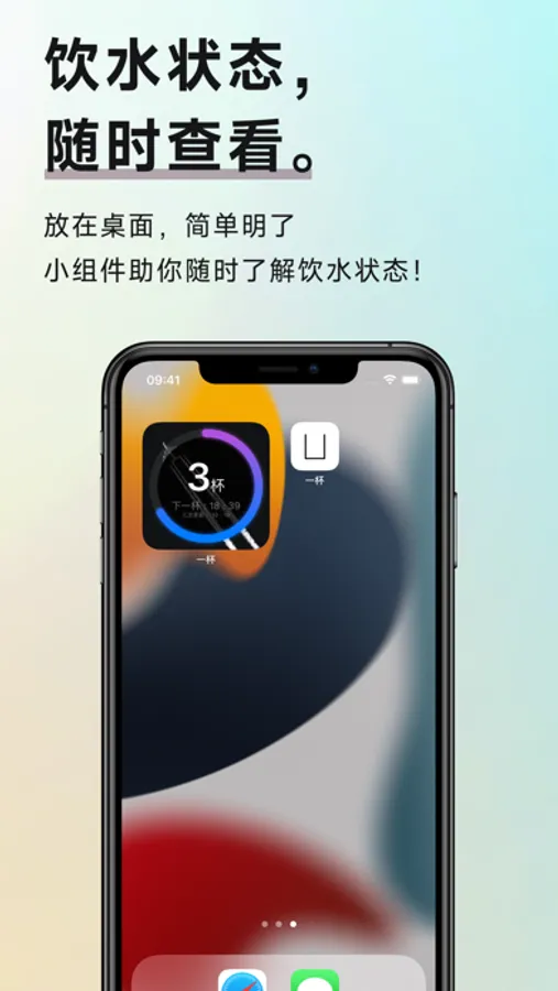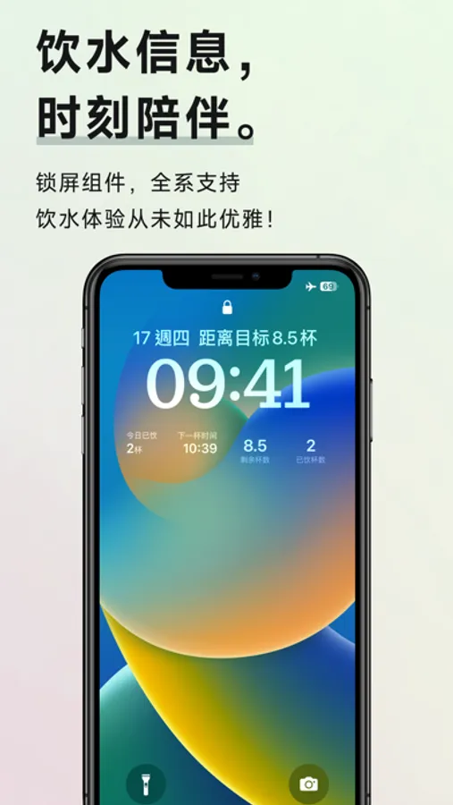 一杯还提供可以放在主屏幕上与锁定屏幕的小组件,不仅能够更方便地了解自己现在是否应该喝水,还可以更便捷地添加饮水记录。