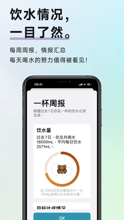 每周一杯还会为您准备周报,让您更加了解自己的饮水情况。