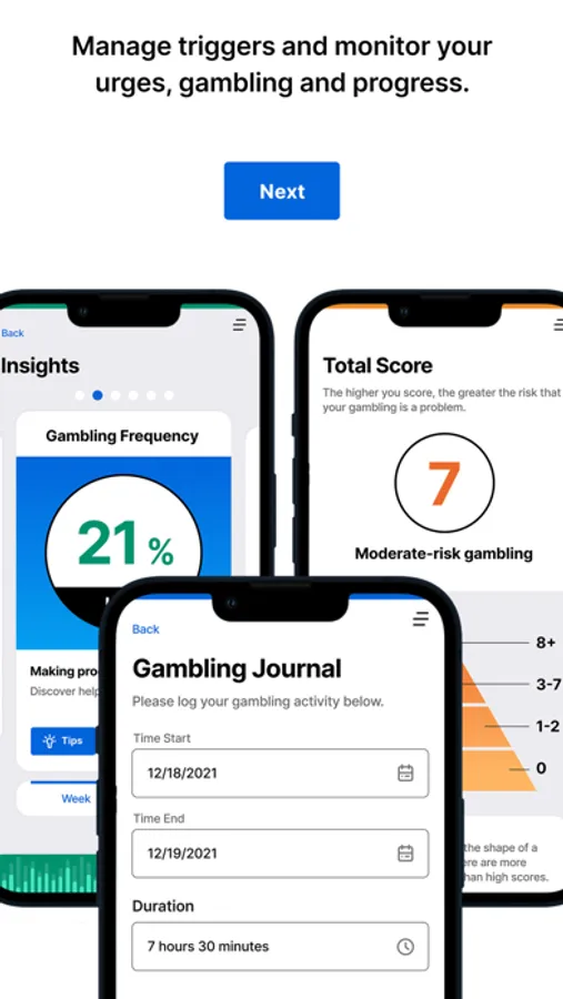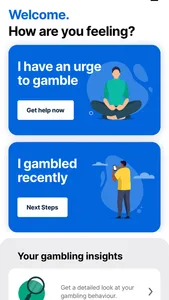 Learn to identify the types of situations that trigger your urges and result in gambling beyond your limits, including your mood, where you gambled, and who you were gambling with. Discover strategies and tips that can help you manage urges to gamble. Learn and practice how to cope with lapses, prevent relapses before they occur, and limit the duration and harm of relapses when they do occur. The app also allows you to get quick access to gambling support 24/7.