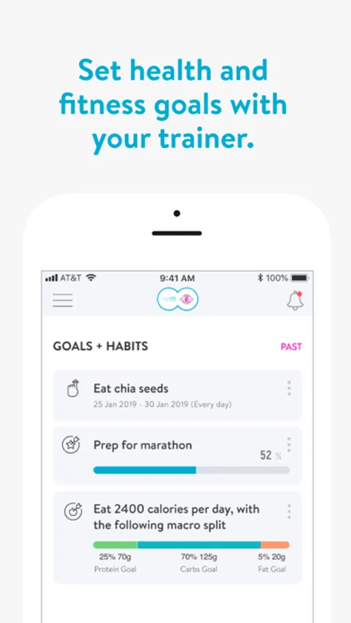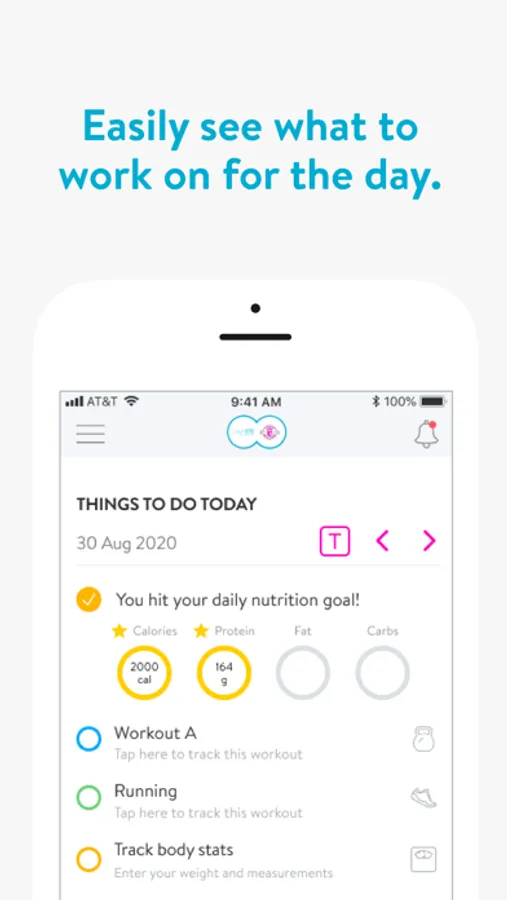 In the Own it Fit with Coach McLoone App, you can start tracking your workouts and meals, measuring results, and achieving your fitness and health goals, all with the help of your coach.