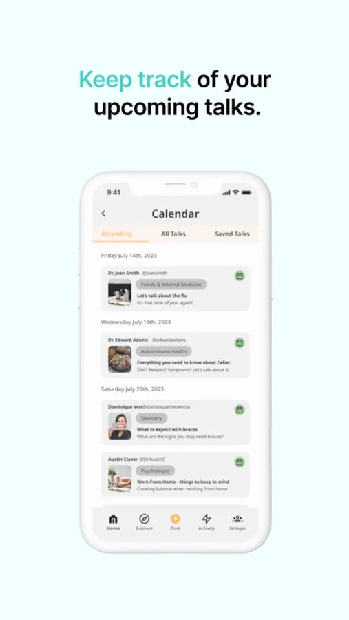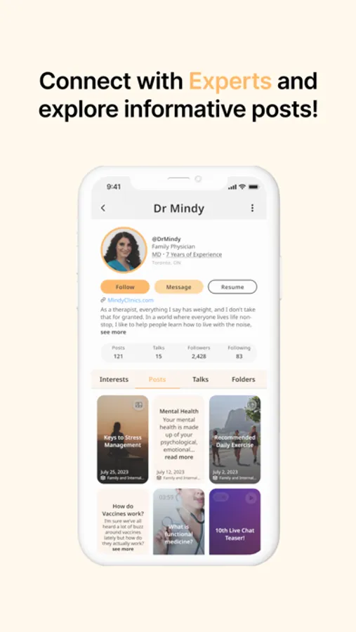 POSTED CONTENT - Your feed emphasizes the discoverability of new content and contains Expert-led audio talks, pictures, videos, and thought-pieces. Through this content, Experts share their knowledge with the community and Users can share their experience with health & wellness topics that you’re interested in.
