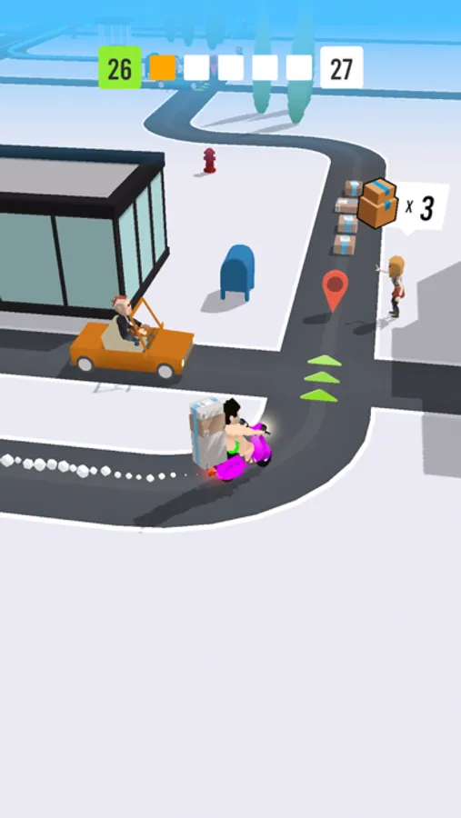Pick up and drop off packages to customers to earn money and level up. Explore the world and discover new zones.