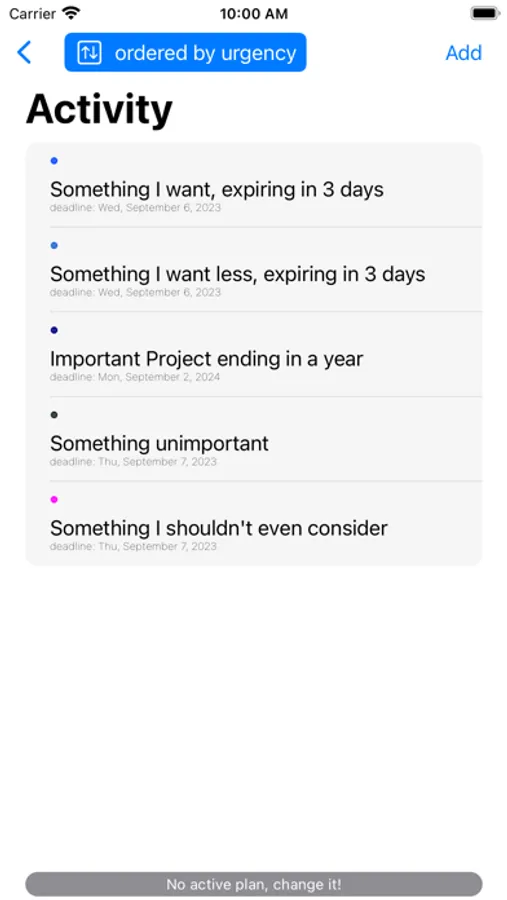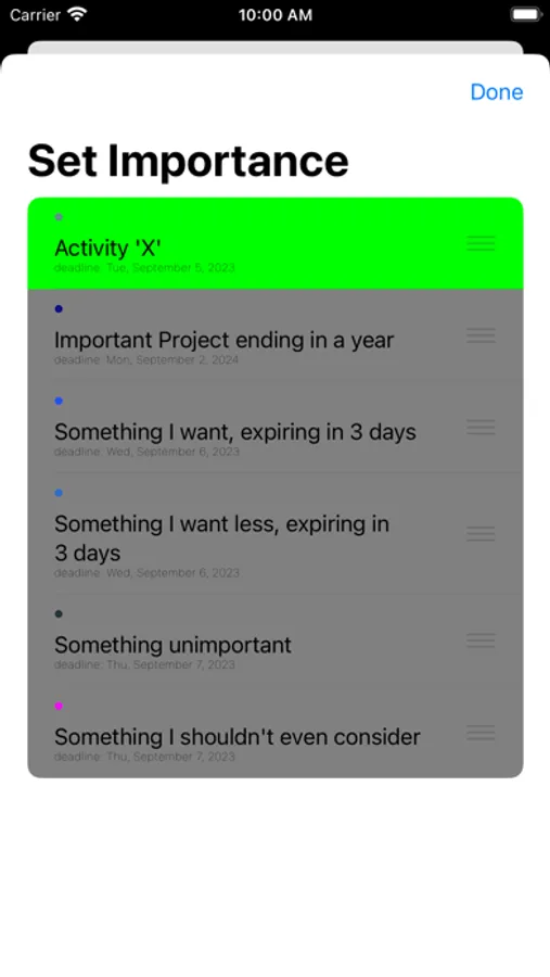 Dynamic Prioritization of Activities: Xcloc introduces a revolutionary approach to task management by allowing you to set task importance through a simple drag and drop mechanism. Importance is not urgency. Xcloc calculates urgency over time based on your defined importance, helping you focus on what's critical and combating procrastination effectively.