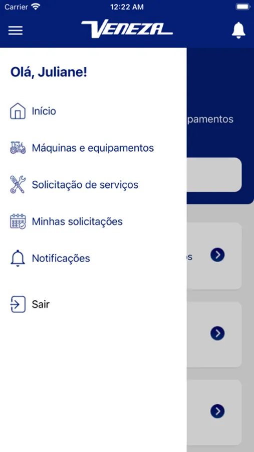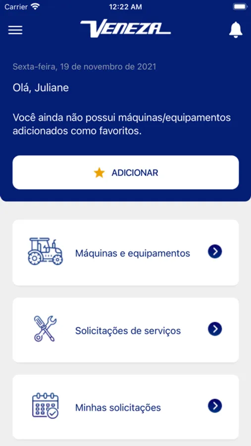 App para solicitação de serviços para máquinas e equipamentos do Grupo Veneza.