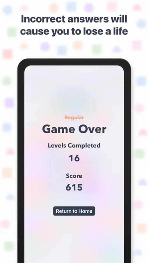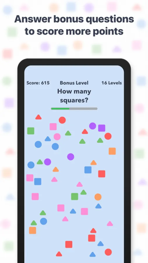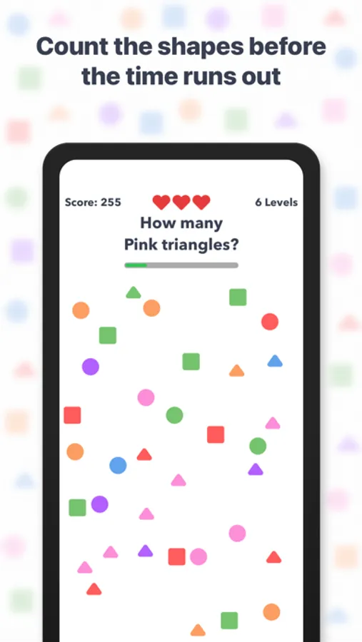The time to count the shapes will decrease as you complete more levels.