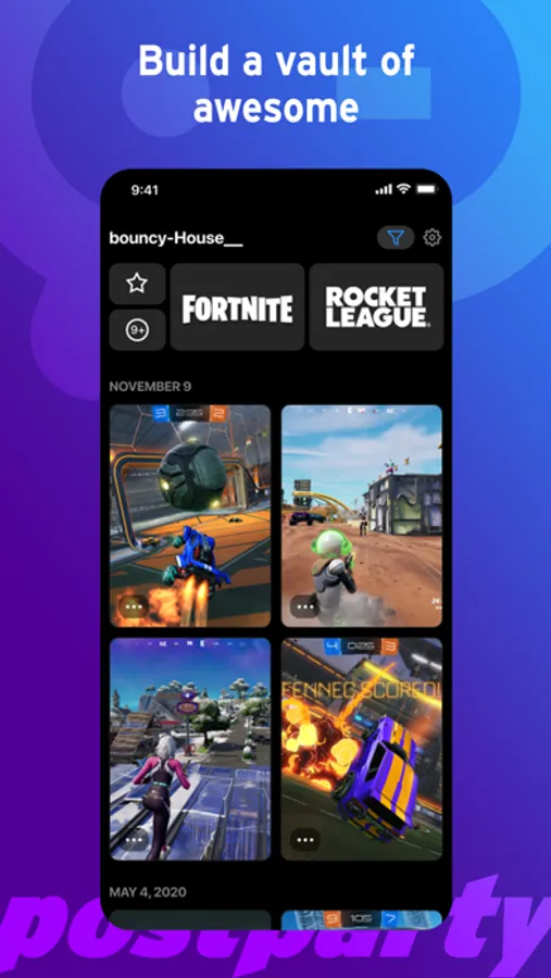 2. Capture moments from Fortnite or Rocket League with the press and hold of a button on your controller. Postparty will save, store and even organize your content in the app.
