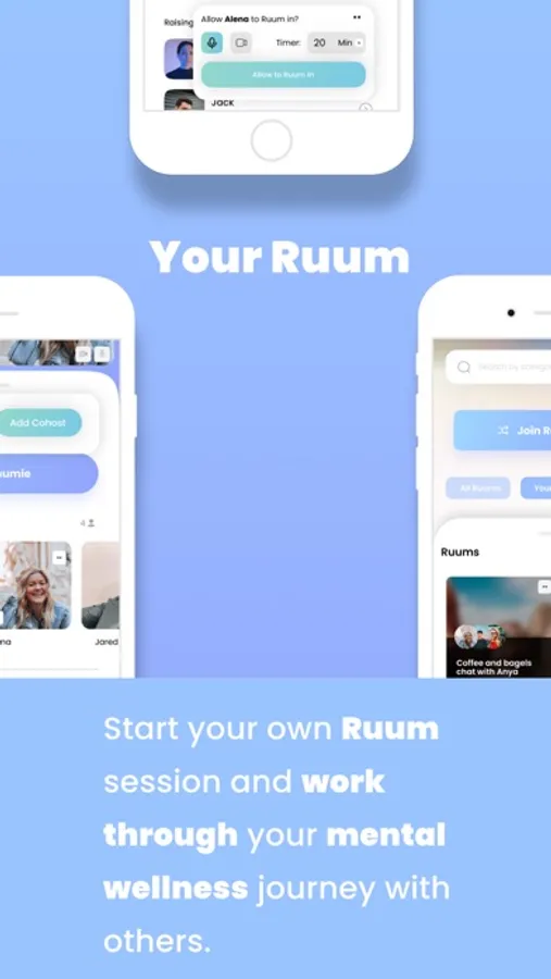 Start your own Ruum session and reach an audience, open up, discover, and work through your mental wellness journey with others.