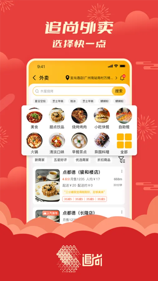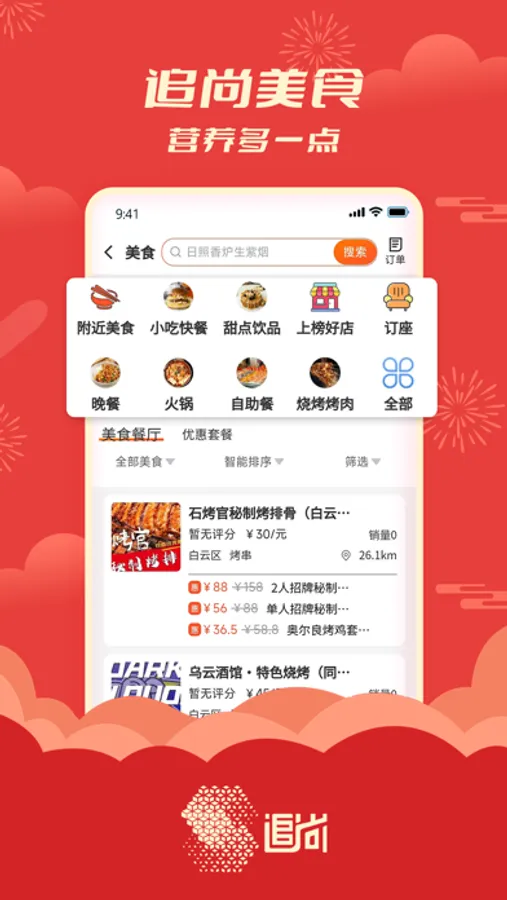 搜索附近外卖美食,预约订餐;