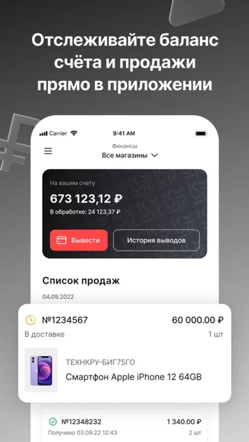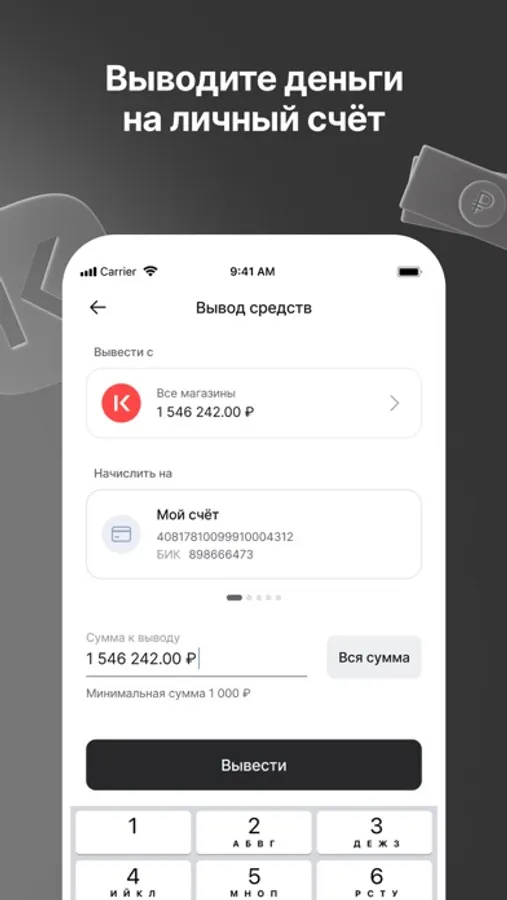 Просмотр баланса счета продавца и вывод средств на личный счет