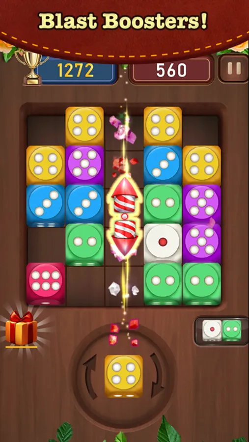 Merge same dices into higher values and get powerful gifts.