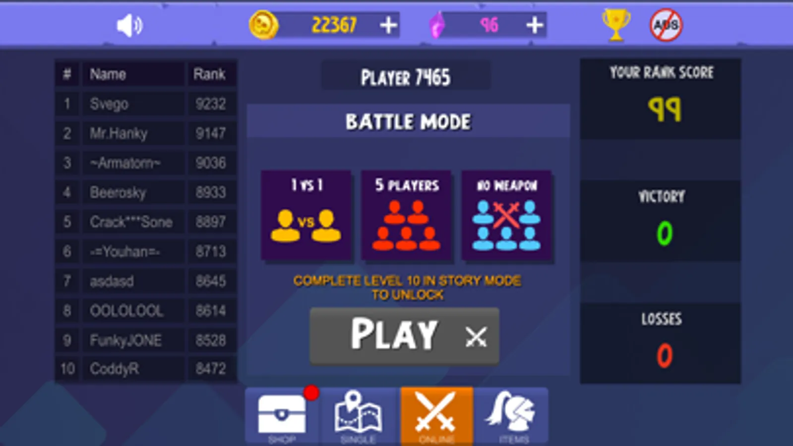Compete against players from all corners of the world in the thrilling multiplayer mode. Prove your worth in the global rankings and show off your skills as the best stickman fighter out there.