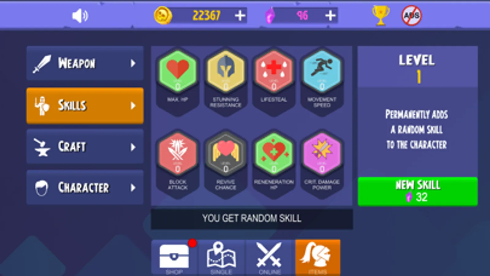 Experience heart-pounding action as you engage in one-on-one battles against skilled AI opponents or challenge your friends in real-time PvP mode. Unlock and upgrade unique skills and abilities to create your own combat style and dominate the battleground.