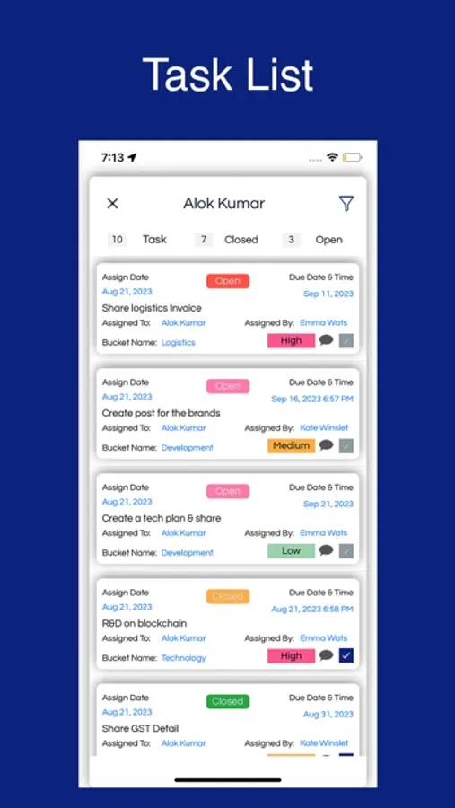 Tasks can be assigned to specific individuals with ease using our task management app. Once completed, tasks can be swiftly closed, providing clarity on project progress and completion.