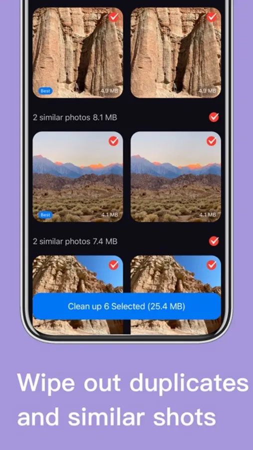 In today’s world, where huge amounts of data are constantly circulating, you often want to get rid of unnecessary pictures that have piled up on your phone. This is when Meta Cleaner comes to your rescue! With our app, you can search and delete screenshots, similar pictures, Live Photos, burst photos, and videos.
