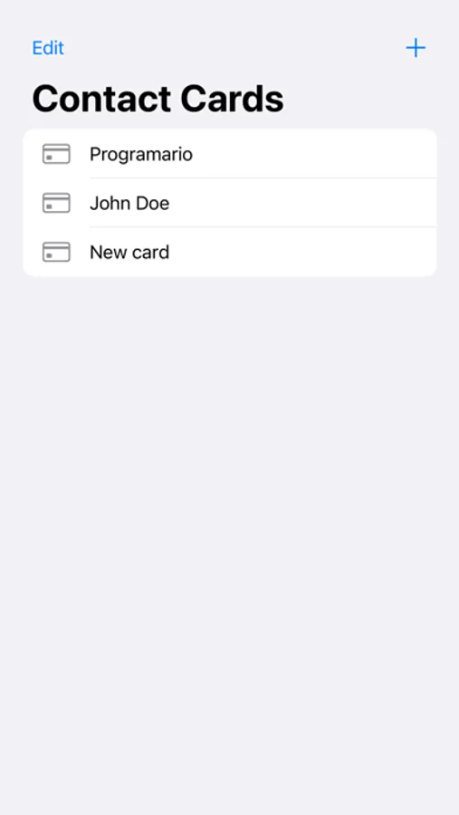 - Tap the share button of the card to share the contact via email, SMS/iMessage, Whatsapp, Signal or other apps/messengers.