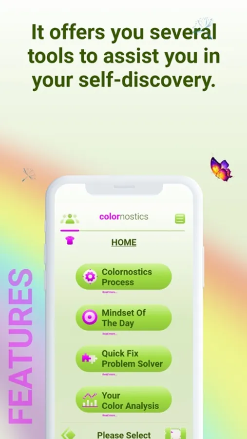 Colornostics is a Mobile app for self-discovery through the deeper meaning of color in your life. This incredible app uses a unique combination of Neuro-Linguistic Programming (NLP) with Psychology of Color. Colornostics will help you understand what is preventing you from finding solutions and implementing your progress.