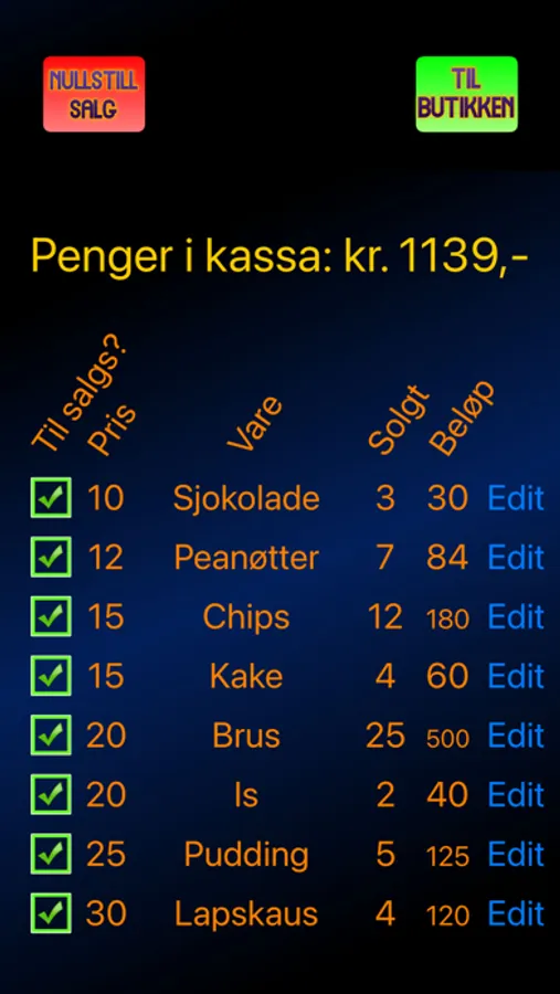 Her får du hjelp til å holde styr på alt du har solgt i butikken din. Du får for eksempel full oversikt over hvor mange porsjoner lapskaus du har solgt og hvor mye inntekter du har fått på puddingen. Skattemeldingen blir bare en lek når du har brukt denne appen.