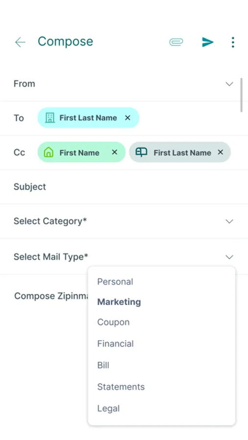 Zipinmail is your Virtual Mailbox. Zipinmail delivers mail digitally to your mailing address. Your Virtual Mailbox address is the same as your mailing address. You can access your mailbox in your cell phone.