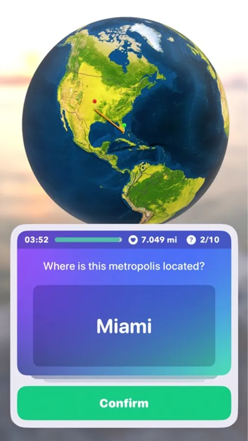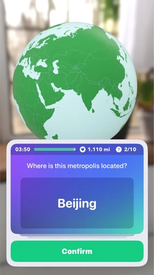Use augmented reality to place the earth as a 3D model in its accurate and undistorted form and engage in an authentic exploration of our planet. In a total of 8 fun game modes, you have to either mark a country, recognize and name a location, assign a flag to its corresponding country, place a pin as accurately as possible on a mountain, or choose from multiple-choice answer options.