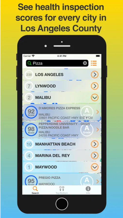 The Safe LA Dining App makes available over 27,000 restaurant health inspection scores provided by the County of Los Angeles in California, covering restaurants residing within the boundary of Los Angeles County.