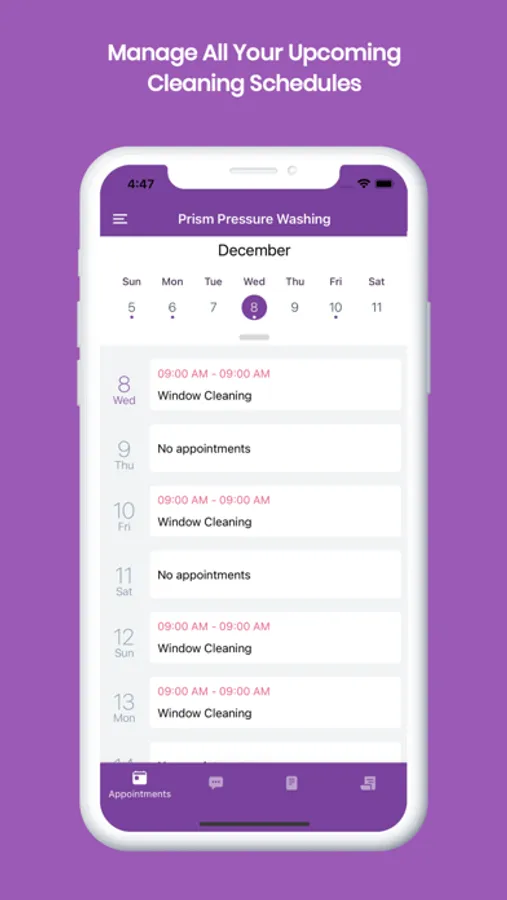 Manage your bookings, make changes, download invoices and chat with cleaning business manager from customer app.