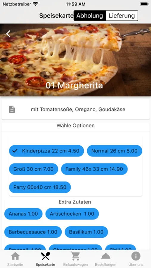 Holen Sie sich alle Ihre beliebtesten Mahlzeiten: Pizza, Pasta, Schnitzel und vieles mehr, wenn Sie die App installieren!