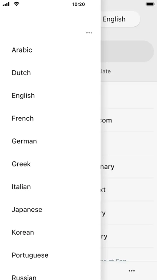 English - Spanish - French - German - Arabic - Russian - Korean - Greek - Turkish