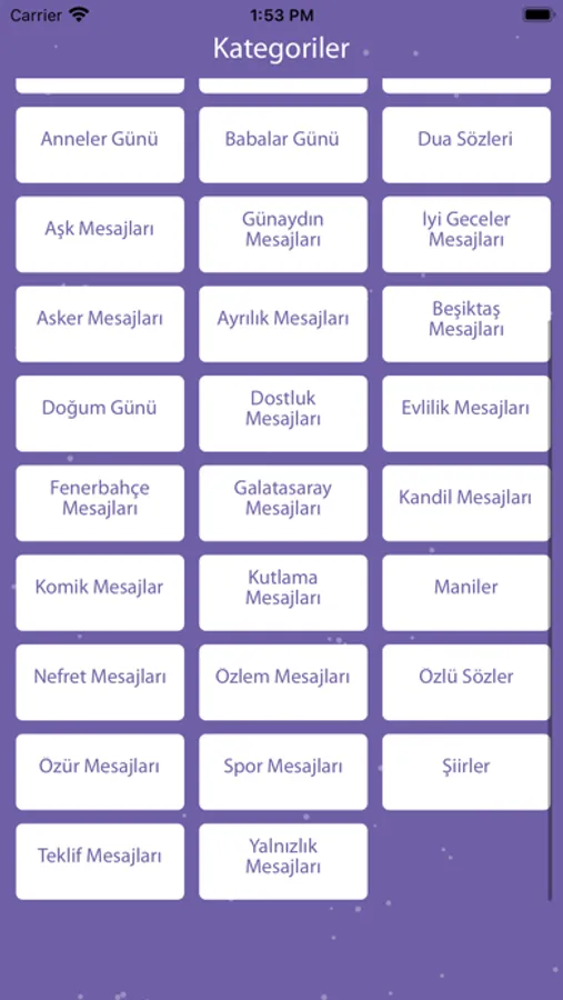 Yaklaşık 40 kategorinin olduğu ve içerisinde binlerce hazır mesajların bulunduğu bu kategorileri ücretsiz olarak kullanabilirsiniz.